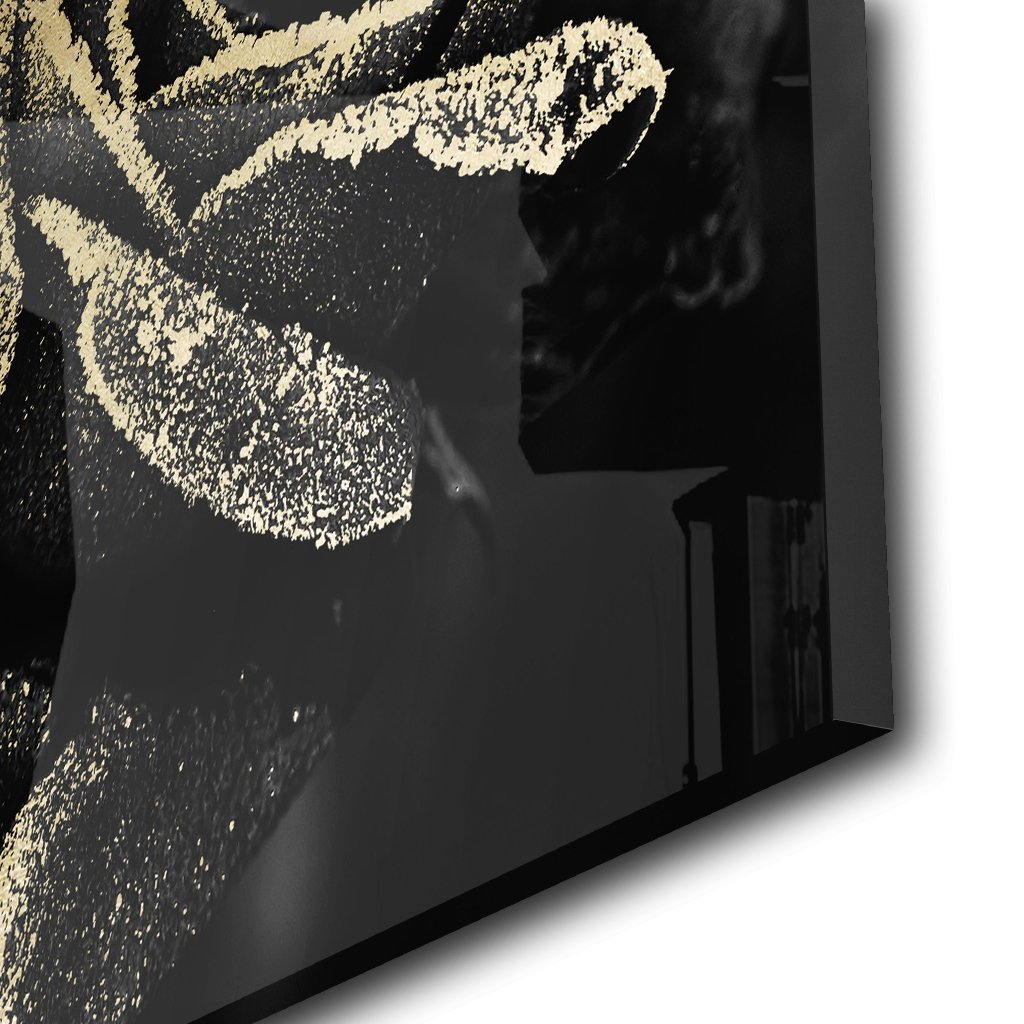 Das Motiv "Abstract Rose" mit Gold hinter Acrylglas ist ein einzigartiges Kunstwerk, das durch seine edle und luxuriöse Optik hervorsticht.