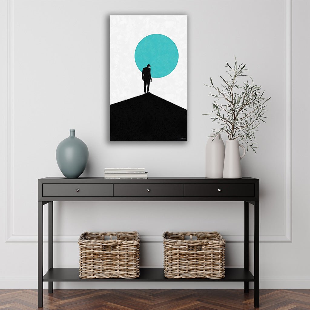 Das Hochformat Motiv im modernen Stil ist ein Werk des griechischen Künstlers Mr. Underdott. Seine Werke sind eine Mischung aus den Bereichen Minimalismus und Surrealismus. Er erschafft Umgebungen mit geometrischen Formen und Elementen aus der Geschichte bis hin zur Moderne.