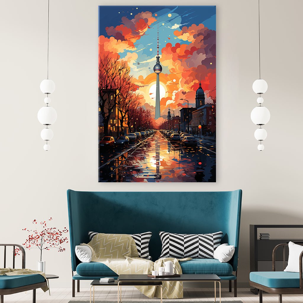 Stadtmotive im modernen Popart-Stil verleihen ikonischen Orten wie dem Schiefen Turm von Pisa eine neue Dimension. Die bunte, dennoch gedeckte Farbgestaltung lässt die Architektur auf einzigartige Weise hervorstechen. Das Zusammenspiel der Farben fängt die besondere Energie der Stadt ein. Dieses Motiv eignet sich perfekt als Blickfang für Wohnzimmer, Schlafzimmer oder Flur.