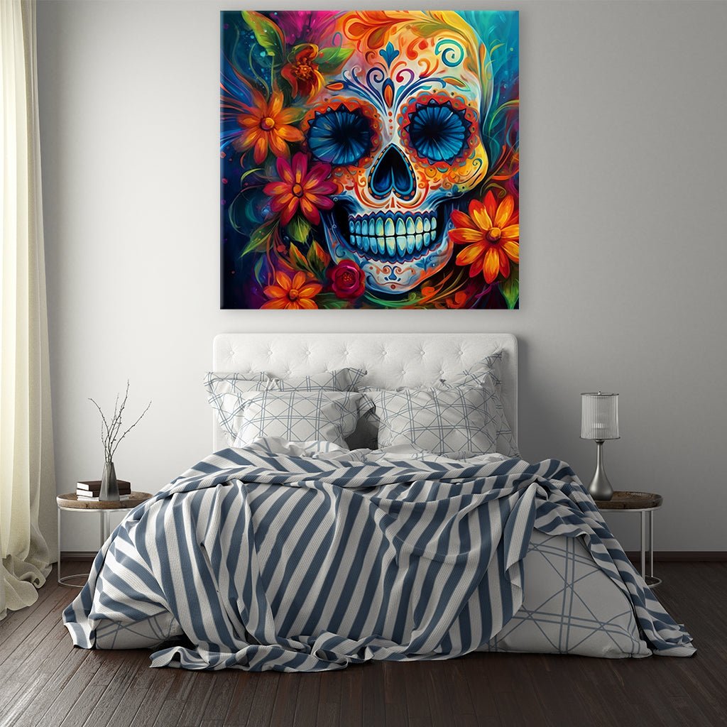 Die lebendige Tradition der "Sugarskulls" und "La Catrina" erstrahlt im charakteristisch bunten mexikanischen Stil. Das Fest der Toten zelebriert das Leben und die Verbindung zu den Verstorbenen. Die fröhlichen Farben und kunstvollen Details dieser Motive ehren die Vergangenheit und erinnern daran, dass der Tod ein Teil des Kreislaufs des Lebens ist. Ein Tribut an die mexikanische Kultur, der in jeder Farbe und Form strahlt.