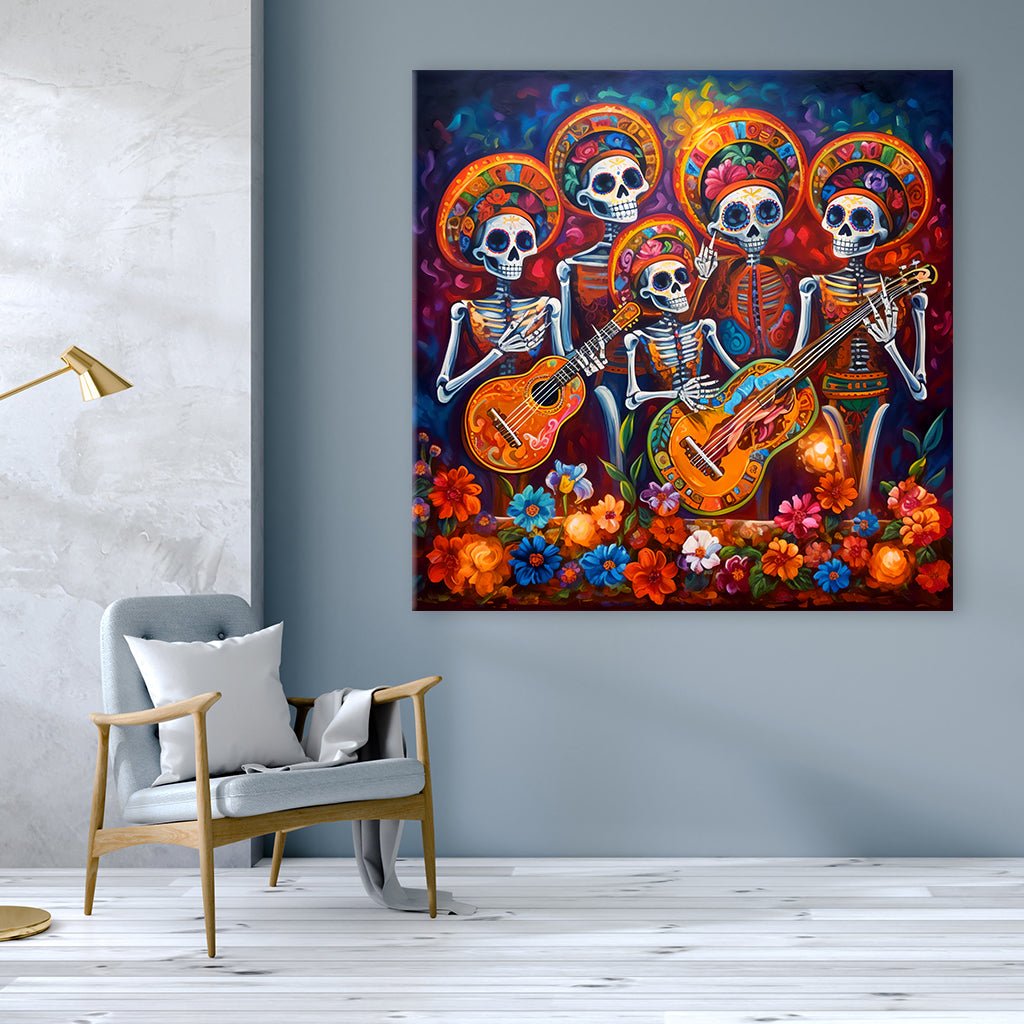 Die lebendige Tradition der "Sugarskulls" und "La Catrina" erstrahlt im charakteristisch bunten mexikanischen Stil. Das Fest der Toten zelebriert das Leben und die Verbindung zu den Verstorbenen. Die fröhlichen Farben und kunstvollen Details dieser Motive ehren die Vergangenheit und erinnern daran, dass der Tod ein Teil des Kreislaufs des Lebens ist. Ein Tribut an die mexikanische Kultur, der in jeder Farbe und Form strahlt.
