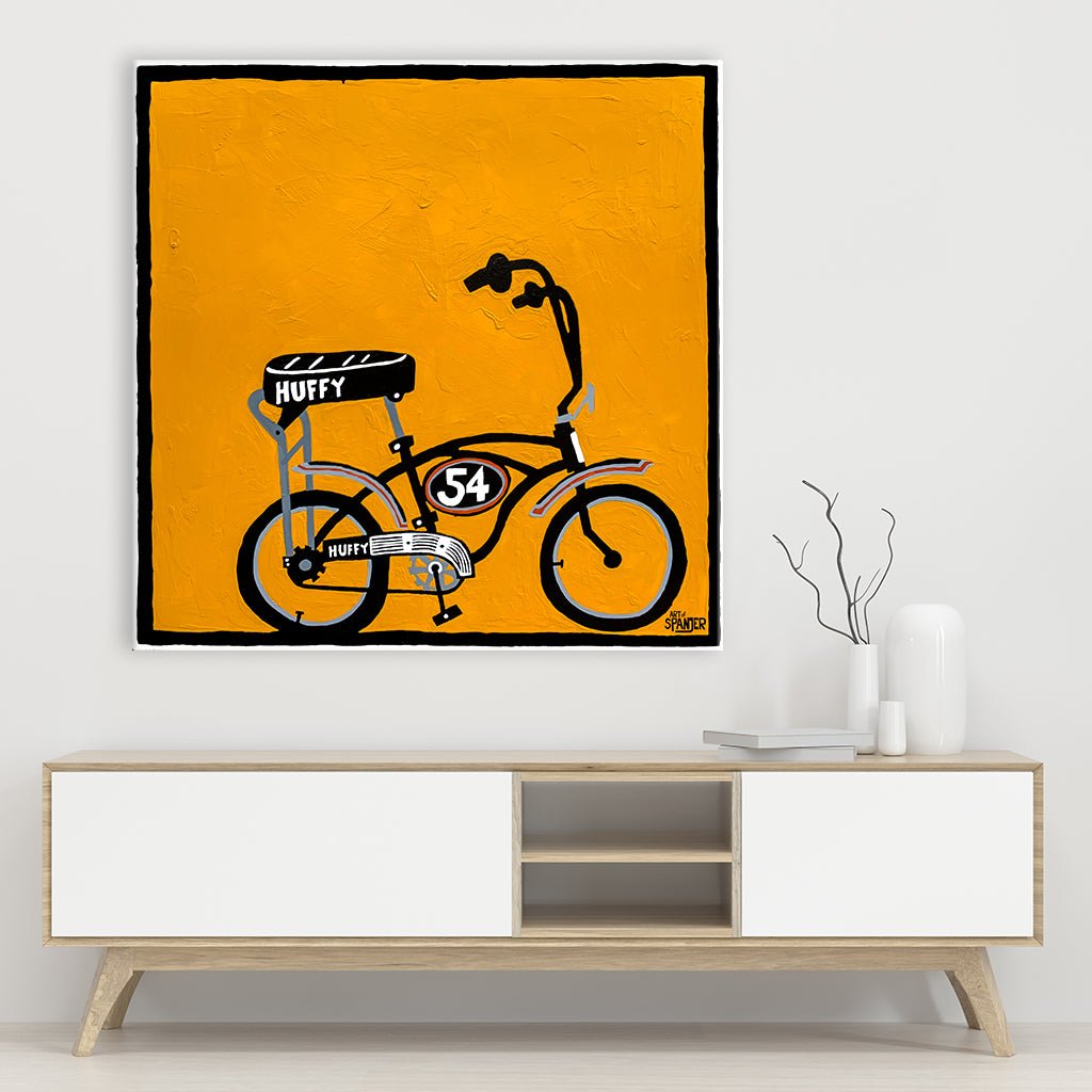 Das Fahrrad auf diesem Motiv ist ein authentisches Retro-Modell, das an vergangene Jahre erinnert. Es war und ist auch heute noch extrem beliebt und zaubert Kindheitserinnerungen hervor. Mit solche einem Rad war man cool und angesagt.